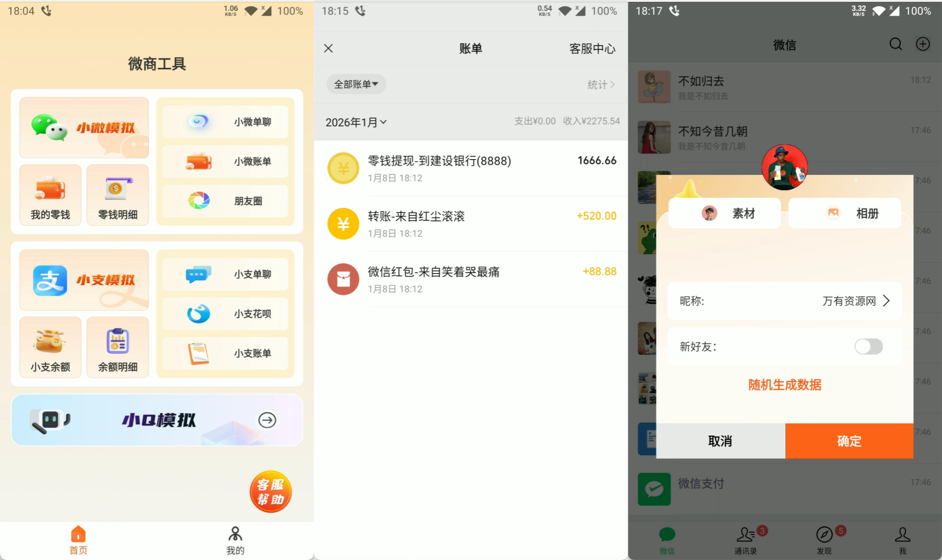 刷圈兔 v10.00 去水印纯净版来了! 打开就能用,轻松生成高度逼真的微信、 聊天记录,支持自定义头像、昵称、时间、多轮对话,还能加红包、转账、语音条、撤回消息等特效。导出图片或视频完全无水印,特别适合做短视频素材、朋友圈演示、营销案例展示。全程离线运行,不联网不传数据,安全放心。安卓手机直接安装,免费分享,即装即用!