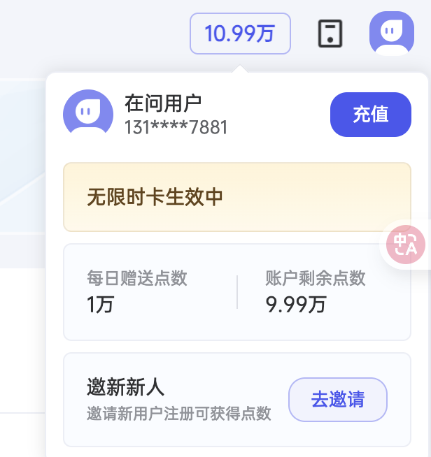 邀请链接注册后,你我都可以获得99999点数,用来Ai文本对话或Ai绘图