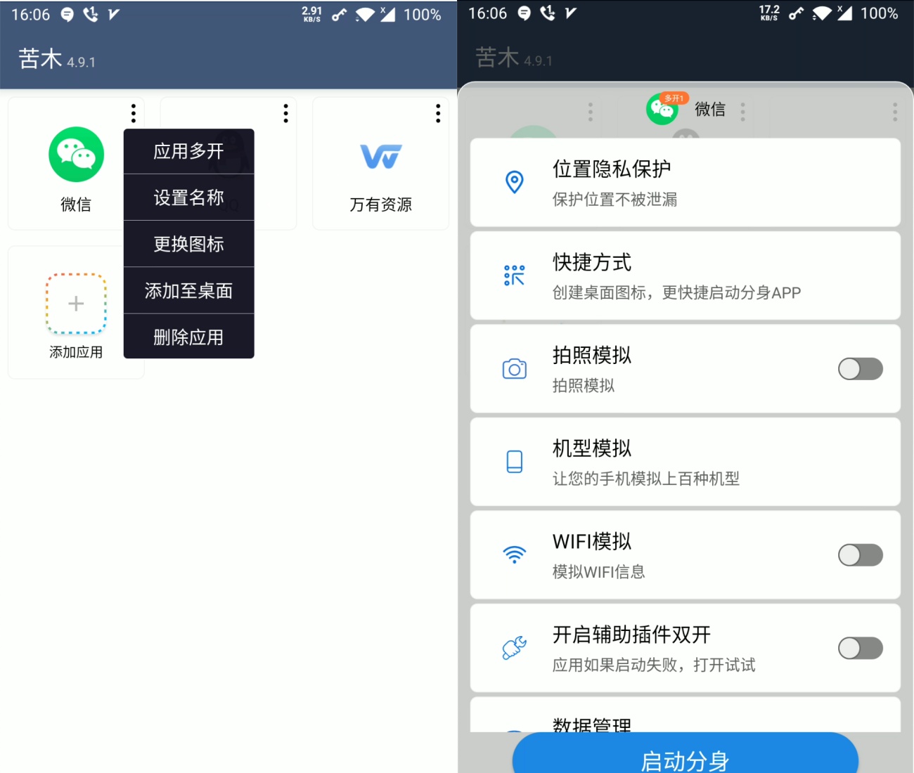 苦木 v4.9.1 新版来了!基于新内核开发,全面兼容安卓16及各类小众应用,专为需要多开、定位修改或拍照替换的用户打造。无论是工作考勤还是生活需求,它都能轻松应对:支持主流办公软件如某钉签到、某微打卡,某定位随心切换,拍照功能可智能替换为指定图片(需自行测试效果)。轻量稳定,持续更新,是安卓分身与位置模拟的实用工具。