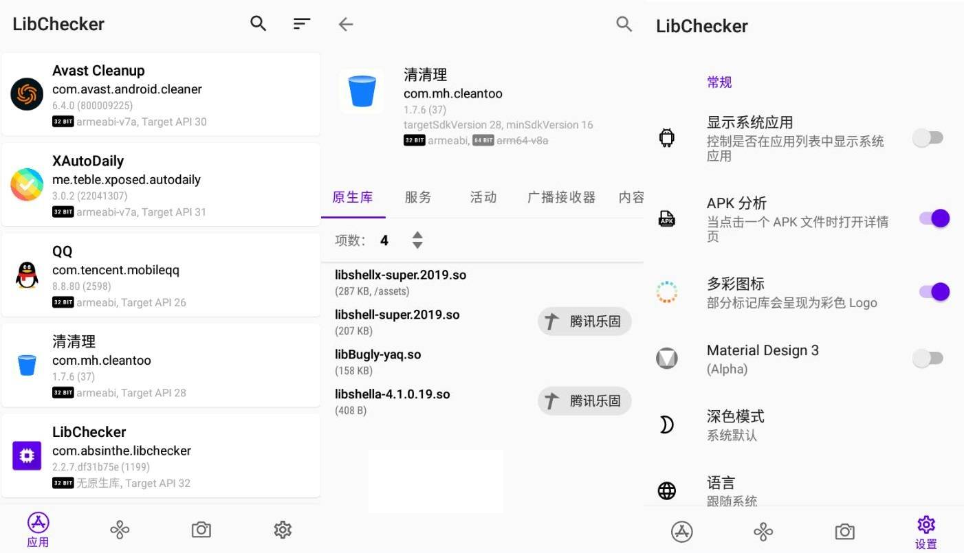 LibChecker 是一款专为安卓用户打造的强大系统工具。可深入解析 APK 文件,查看应用所使用的第三方库,精准呈现 ABI 架构(支持 32 位或 64 位)。具备知名库标记功能,实时更新规则仓库,轻松识别各类广告、统计等专项 SDK。