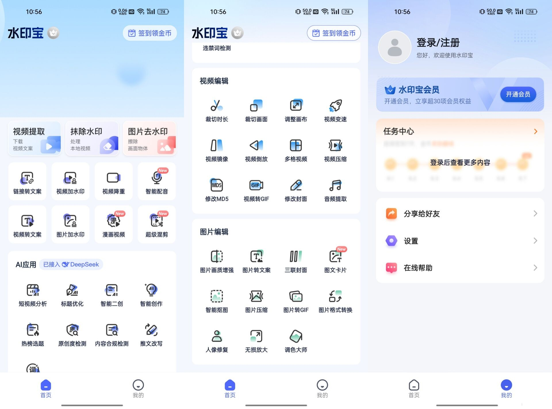 水印宝,一款功能强大的安卓视频编辑应用。支持一键提取无水印视频,多区域去水印,让视频画面更纯净。加水印功能可自由调节位置、大小、颜色等参数,还能添加图片水印与涂鸦。此外,还具备视频裁切、剪辑、修改封面、倒放、压缩、变速等多种功能,操作简单,满足你多样化的视频编辑需求,是你手机上的专业视频编辑好帮手。