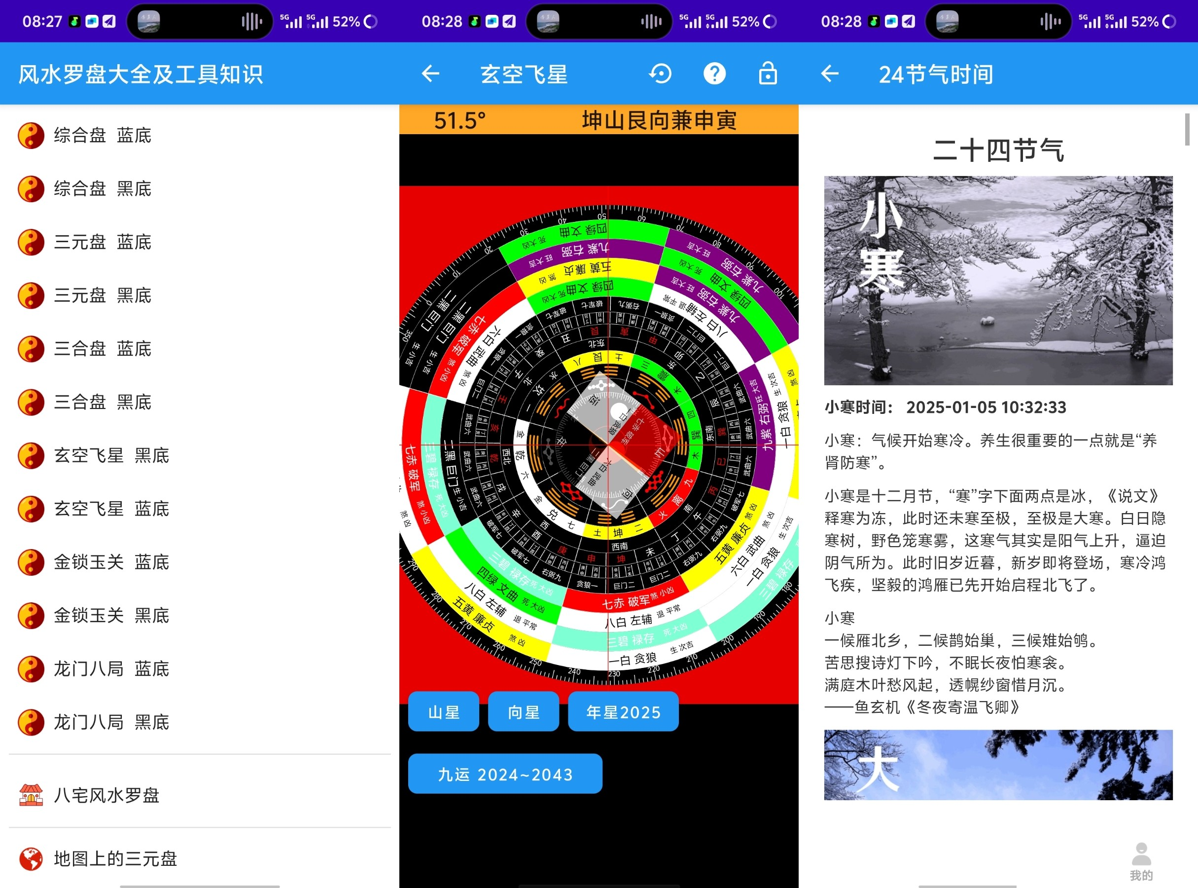 安卓风水罗盘大全,一款功能强大的风水测算应用。融合多种专业罗盘功能,可精准定位方位,进行风水分析。提供丰富罗盘样式,满足不同风水流派需求。具备实景模式,结合手机摄像头实地分析家居、办公场所等风水状况。还有全面的风水百科知识,助力用户成为风水达人,同时包含老黄历、鲁班尺等实用功能,是您了解风水、布局家居的得力助手。