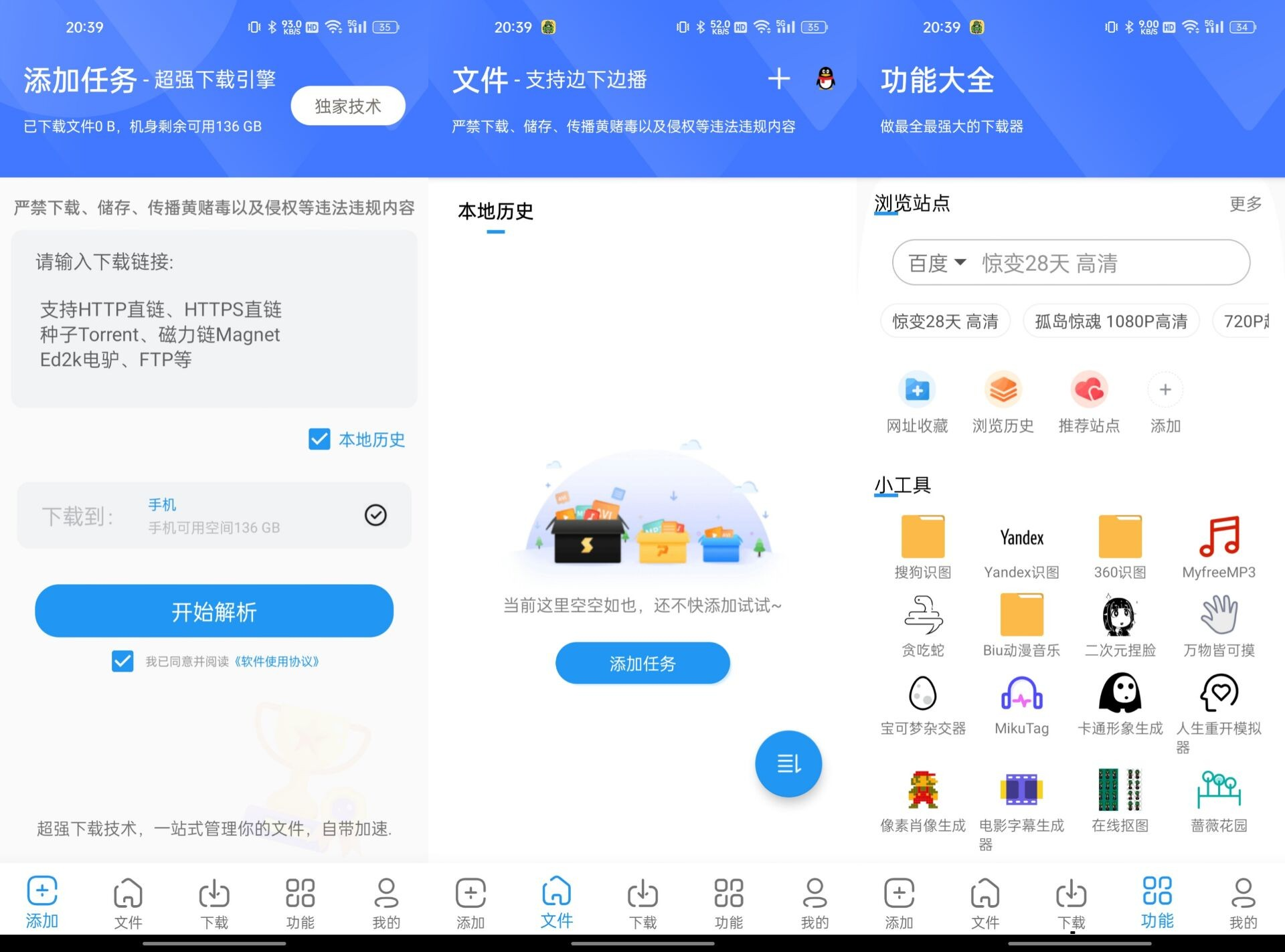 浩克下载,一款重新定义便捷下载体验的安卓应用 。作为一款功能强大的磁力下载软件,它突破常规限制,为用户带来极速且稳定的下载服务,无论是小巧文件还是大容量资源,均可快速完成下载 。支持多种主流下载协议,涵盖 ED2K 电驴、DHT、BitTorrent/BT/P2P 网络、磁力链,同时兼容 http、https、ftp 等常见协议