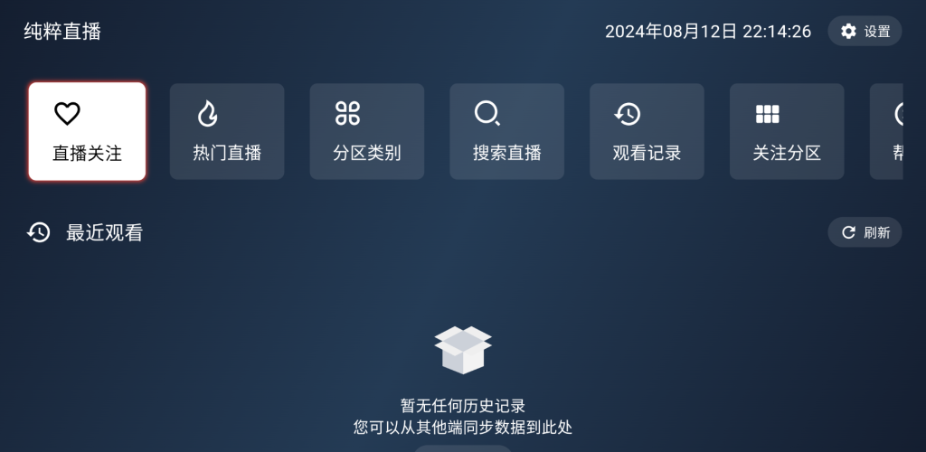 纯粹直播 TV,专为电视大屏打造的优质直播聚合应用 。它打破平台界限,无缝整合 B 站、斗鱼、虎牙、抖音、快手、网易 CC 等七大主流直播平台资源,无需在多个 APP 间切换,打开软件即可一站式纵览各大平台精彩直播,涵盖游戏竞技、才艺表演、户外探险、综艺娱乐等丰富多样的直播内容 。软件界面设计简洁直观,符合电视端操作习惯,通过遥控器就能轻松完成浏览、选择与播放等操作 。支持最高原画级别的高清画质播放,呈现清晰、细腻的直播画面 。设有个性化弹幕设置,可自由调节弹幕大小、速度与显示区域,增添互动乐趣 。还具备智能推荐功能,依据用户观看历史与偏好,精准推送感兴趣的直播 。