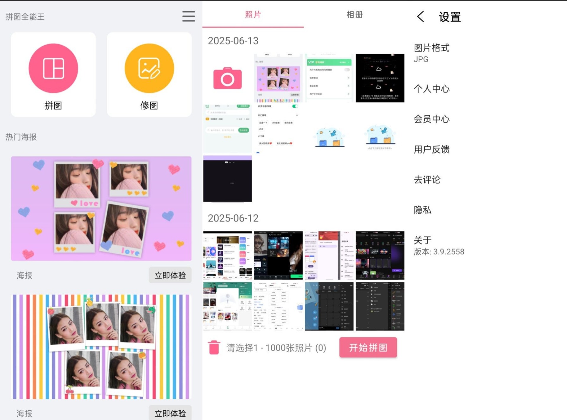 拼图全能王App可以一键拼接长图、九宫格拼图、海报拼图等多种方式。,1000张大容量图片拼图;海量时尚模版,一键制作海报;超大容量拼图,轻松制作照片墙;休闲搞怪风格贴纸,搭配你的各种心情。