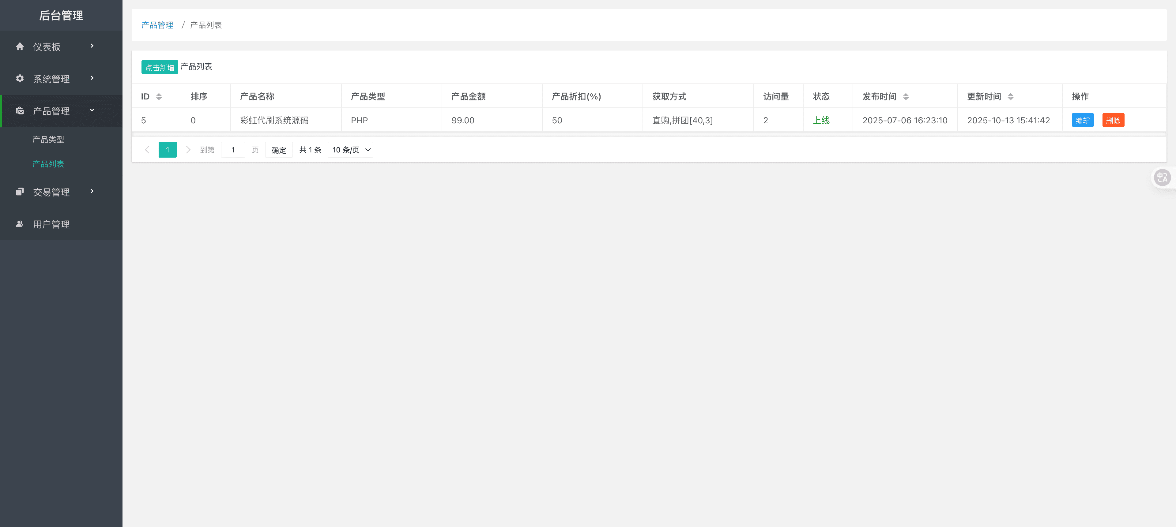 后台账号:admin 密码 123456