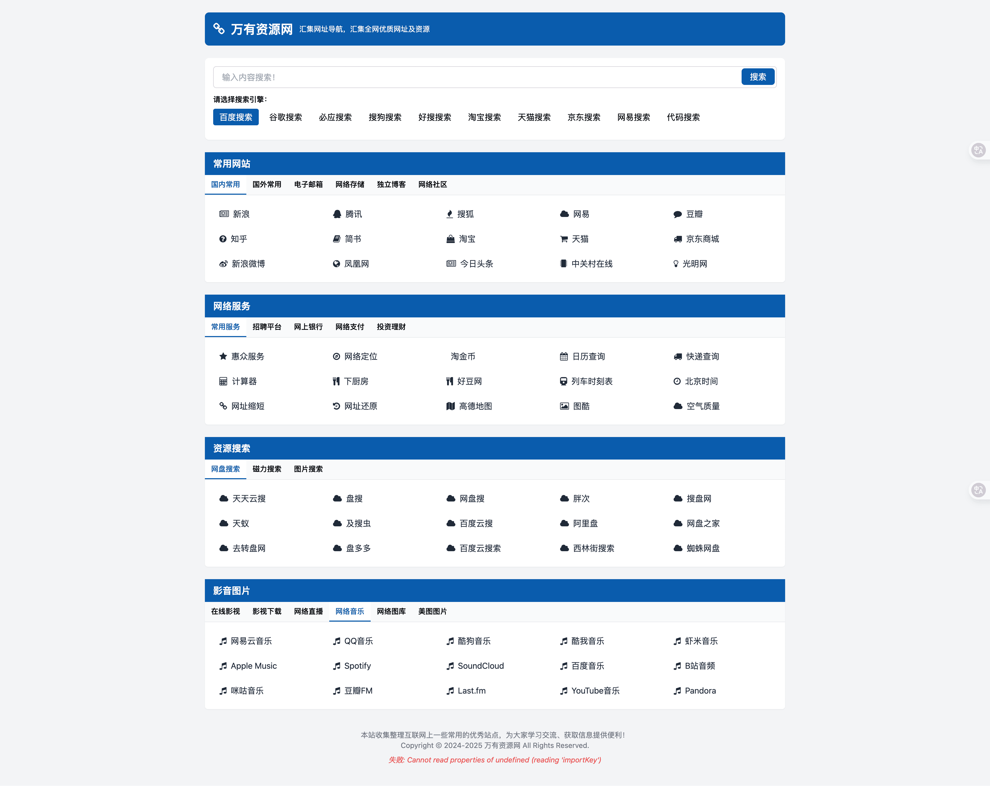 个人轻量化导航站自动适应 HTML 模板,是高效搭建导航工具的优选!分类清晰(含国内常用 / 国外网站 / 图片工具等),支持标签切换与多搜索引擎直达,无需记网址;双端自适应设计,手机 / 电脑访问均排版舒适,蓝白清爽风格 + 交互反馈(hover 变色、标签高亮)提升体验。自带完善 SEO 优化(标题 / 描述 / 关键词 /canonical 标签等),体积仅 9.22KB,下载即用,适合个人快速搭建专属导航站,兼顾实用性与搜索排名优势!